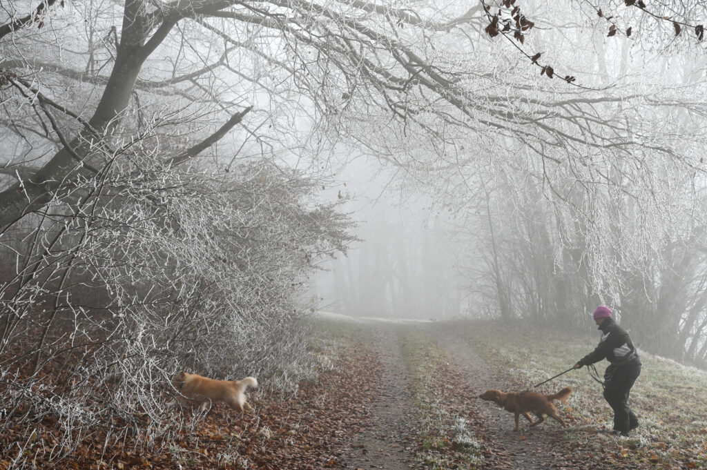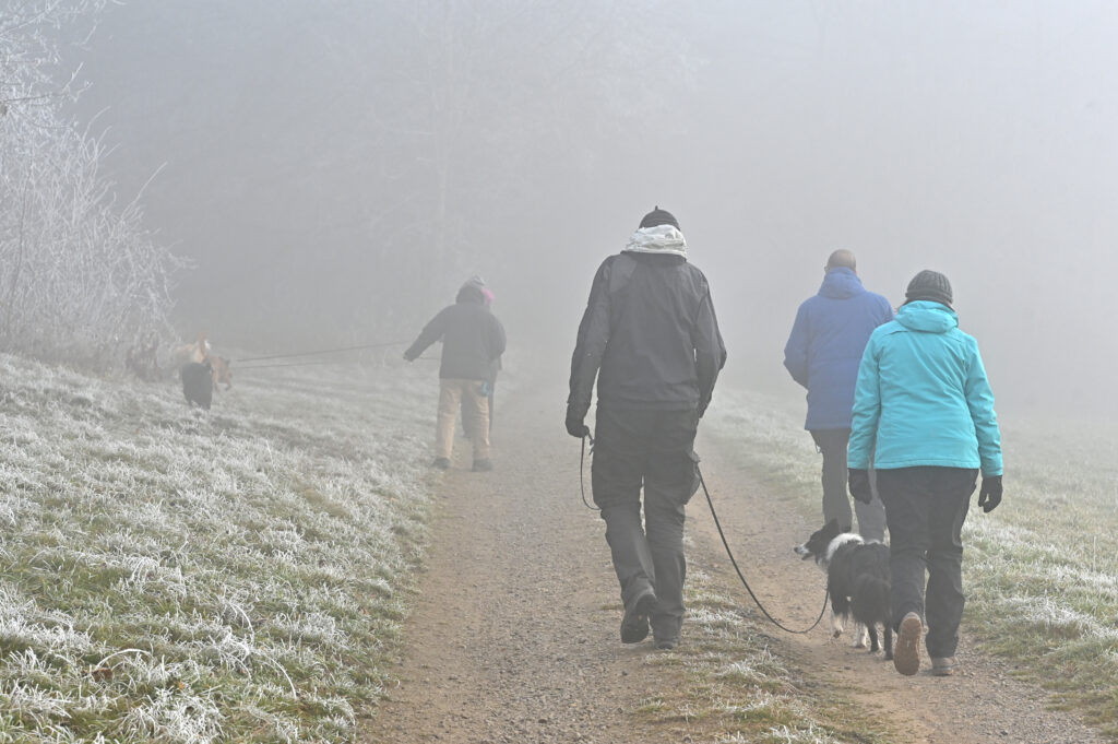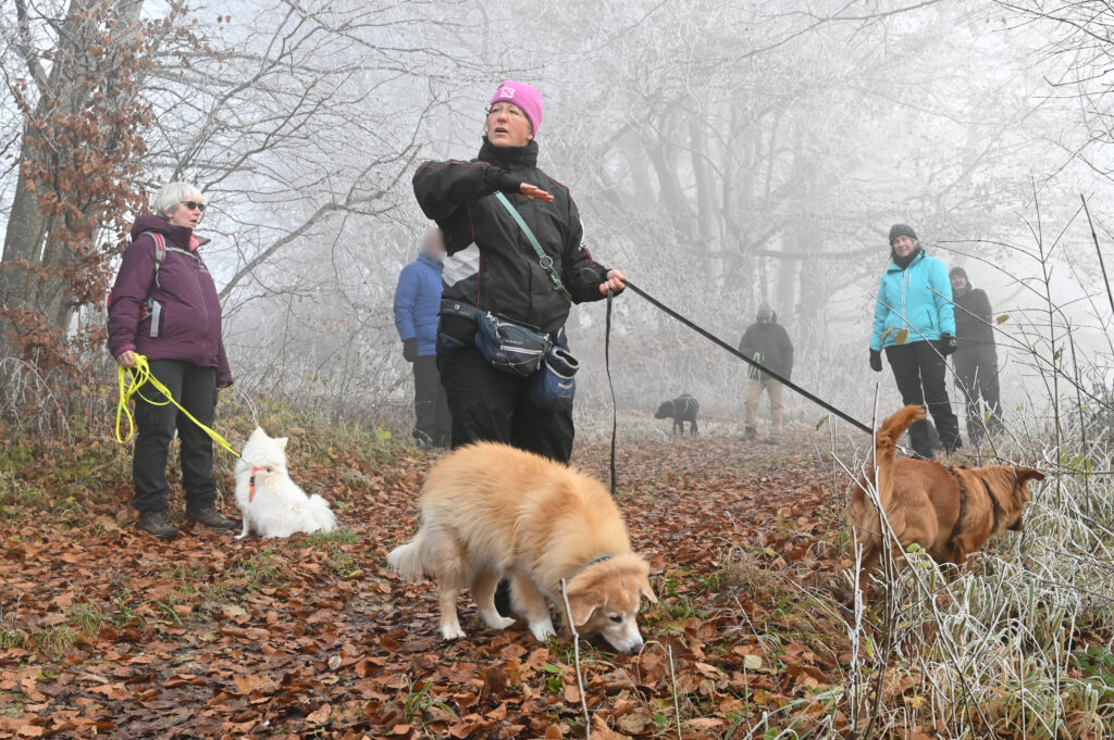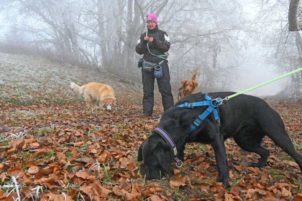An einem Donnerstagmorgen auf einer Juraanhöhe hängt dichter Nebel in den Hügeln und der Raureif bedeckt Zweige und Blätter. Es liegt Spannung in der Luft: Sechs Hunde ziehen an den Leinen ihrer Besitzer und wedeln mit den Schwänzen. Sie wollen unbedingt los und im Wald die begehrten Trüffel finden. Dann setzt sich die Gruppe aus Teilnehmerinnen und Teilnehmer des Trüffelsuchkurses in Bewegung.