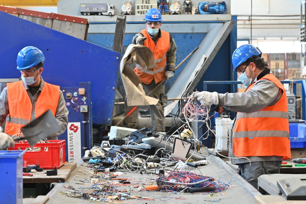 Leuchtweste, Helm, Schutzbrille und Schutzschuhe seien hier Pflicht, sagt er. Fast alle gesammelten elektrischen und elektronischen Geräte aus den regionalen Sammelstellen landen im Oltner Industriequartier.