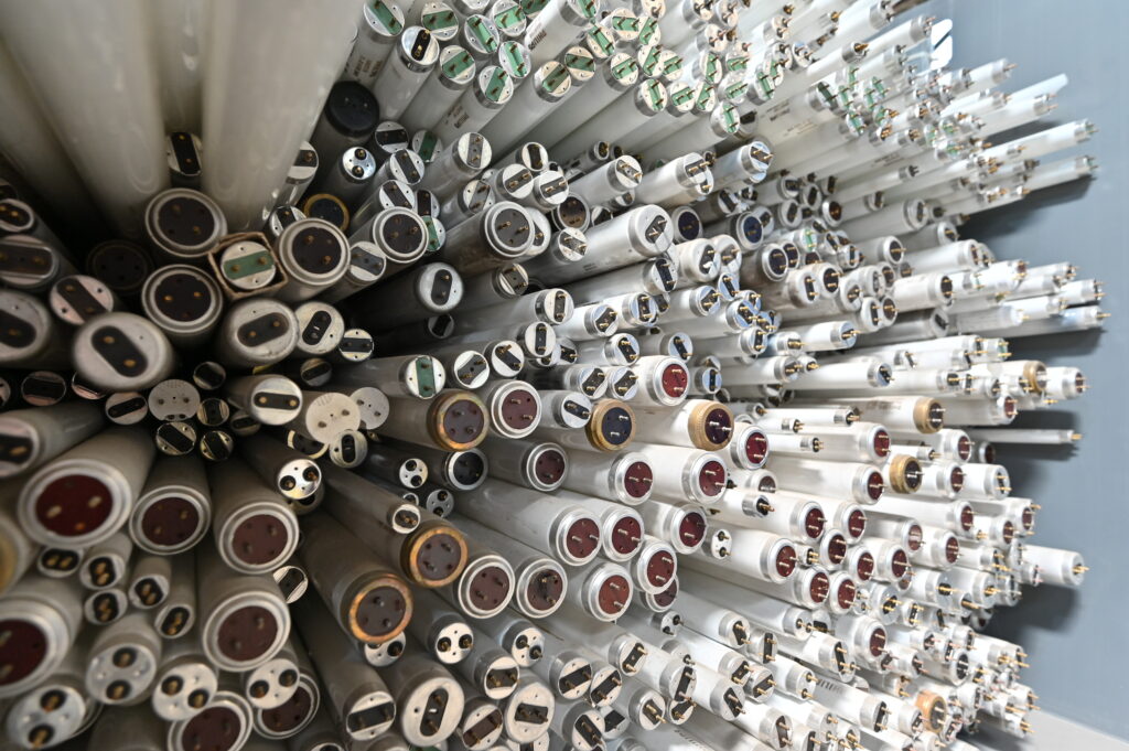 Im Nebenraum werden Bildschirme und TV-Geräte zerlegt. Dabei fällt bei älteren Geräten noch zusätzlich die quecksilberhaltige Hintergrundbeleuchtung an, welche speziell entsorgt werden muss. Die neuen LED-Bildschirme würden hingegen kein Quecksilber mehr enthalten, erklärt der Recyclist.