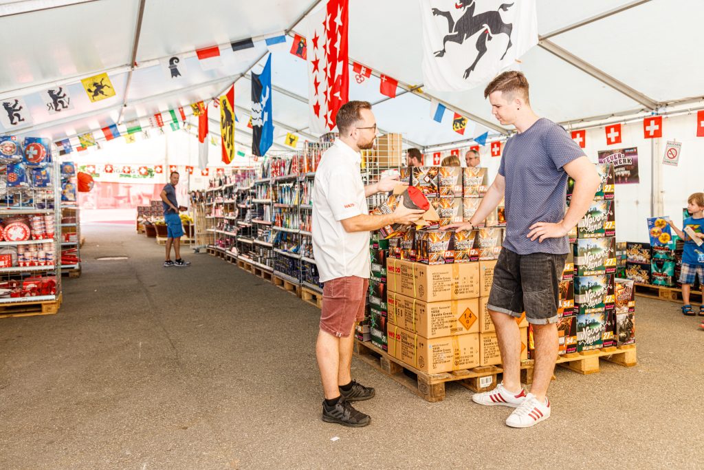 Die meisten Feuerwerkskörper wurden noch gar nicht geliefert. Denn der Aufbau des Verkaufszelts sollte erst am Freitag starten. Was aber bereits im Haus ist, könne zum Hersteller zurückgegeben werden. Eine besondere Dienstleistung der Keller Fahnen AG ist, dass generell jegliches Feuerwerk, sofern originalverpackt, zurückgegeben werden kann.