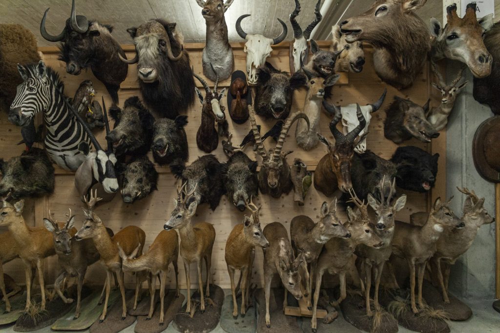 Dennoch streicht er einige Highlights in seiner Sammlung hervor: Zwischen Wildschweinen, Giraffen und Rehen versteckt sich der Kopf eines Walrosses, das vor rund 100 Jahren erlegt wurde. Auch befinden sich Tiere in der Sammlung, die bereits ausgestorben sind. Der grüne Karolinasittich in einer Vitrine beim Eingang gelte seit über 100 Jahren als ausgerottet. Gleich darunter räkelt sich ein Schnabeltier auf einem Stein.