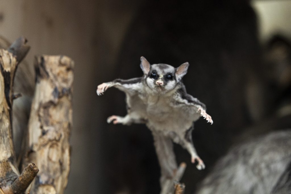 Die schiere Anzahl sowie die Dichte, in der die Tiere in Regalen, Vitrinen und am Boden aufgestellt sind, ist überwältigend. Auf den hinteren Rängen in den Regalen verstecken sich weitere Exponate. Dies sind vor allem Tiere, die Benz nicht zuvorderst ausstellen will, von den er sich aber auch nicht trennen kann. Erneut fällt ein Detail auf: Ein graues Gleithörnchen springt aus einem Regal.