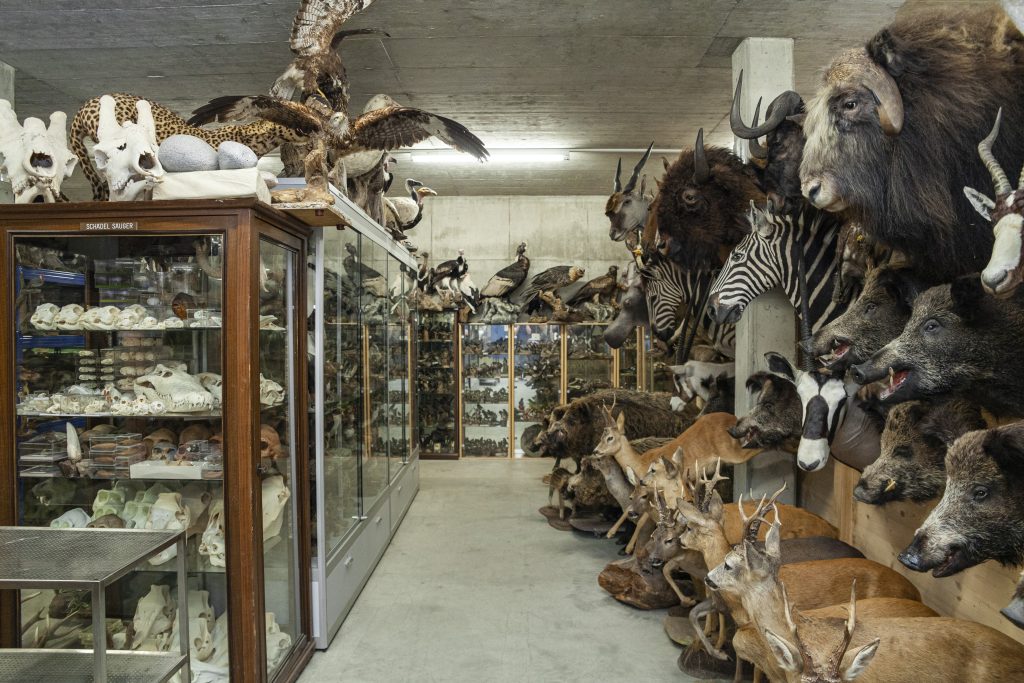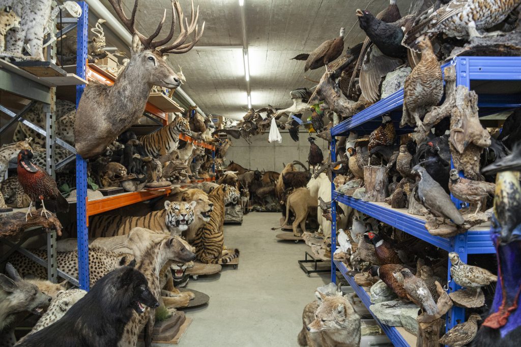 Nach einer Schrecksekunde merkt man, dass das Tier völlig reglos bleibt und entdeckt die Welt, die dahinter liegt: Rund 3500 Tierpräparate lagert Walter Benz an diesem unscheinbaren Ort und besitzt damit die grösste private Sammlung an Tierpräparaten in der Deutschschweiz. «Ich gehe lieber in den Zoo als an ein Konzert», so der Wettinger. Von Insekten über Amphibien bis hin zu grossen Säugetieren und Raubtieren gibt es hier für jede und jeden etwas zu sehen. Ständig fallen neue Details ins Auge: Zwischen Wildschweinen und Geiern gähnt einem ein Nilpferd entgegen.