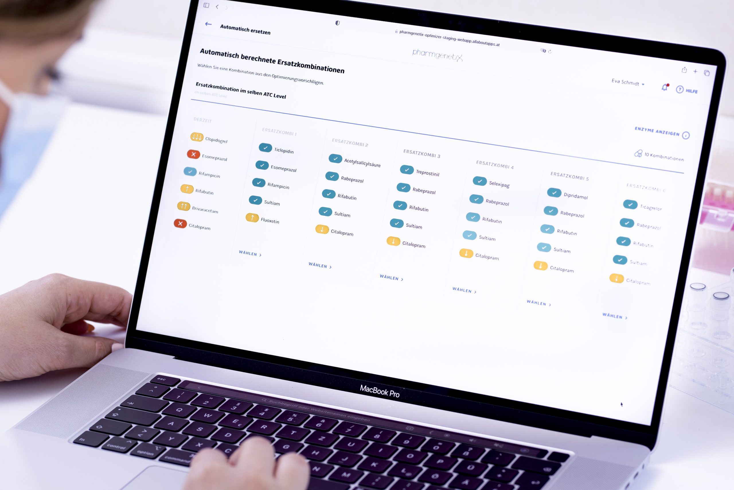 Die Resultate zeigen mittels eines Kalkulationsprogramms, welche Medikamentenwahl und Dosierung am besten ist. Dabei werden auch Wechselwirkungen zwischen verschiedenen Medikamenten berücksichtigt. Die Datenbank wird laut Pharmgenetix laufend aktualisiert und beinhaltet alle gängigen Wirkstoffe von Medikamenten.